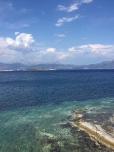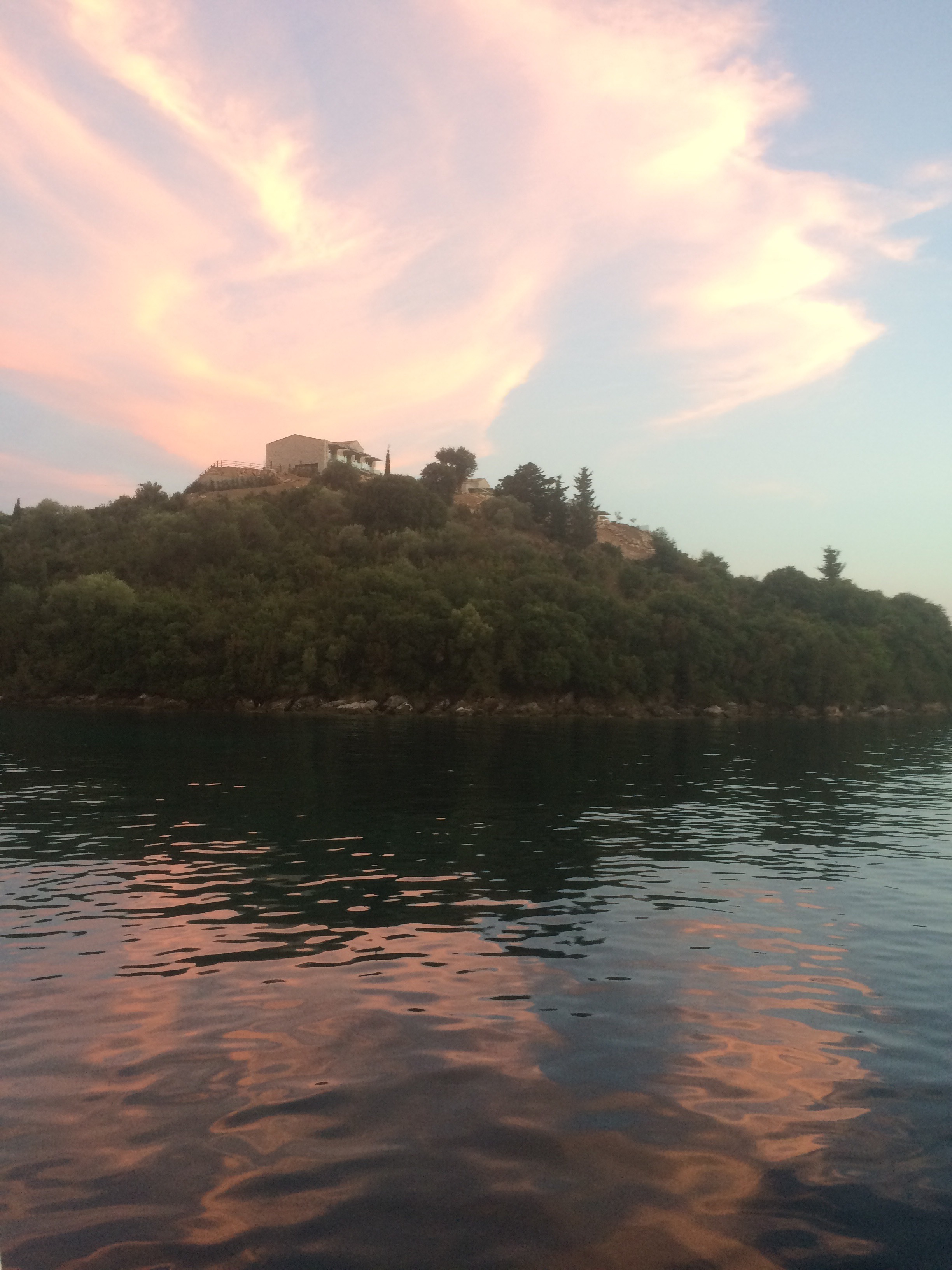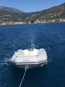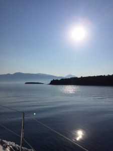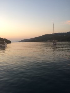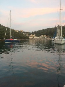 Efter frukost tog Göran jollen in till Nidri marina för att köpa lagning till gummibåten. Den verka släppa ut lite luft, så för säkerhets skull ser vi till ha ett lagningskit i båten. Sedan gjorde vi oss klara för avfärd. Det blev en dryg timmes motorgång till Meganisi och favoritviken Abelike. Linor in till land bredvid en engelsk motorbåt och ett välbehövligt dopp. Carina fixade lunch – tonfisksallad, bröd och olivolja som sköljdes ner med lite vin. Eftermiddagen spenderades med läsning, solande och en tupplur i sittbrunn. Framåt kvällen var det, som vanligt, dags för kvällsdrinken innan vi tog gummibåten (som höll luften bra!) till Minas taverna. Samtliga i besättningen tog baconinlindad kycklingsouvlaki och Mythos som måltidsdryck. Vi hamnade i samspråk med ett engelskt par som också ägde en andel i en segelbåt. Trevlig kväll med mycket skratt innan avfärd med gummibåten (som fortfarande hade gått om luft) tillbaka till Fragancia. En stunds avkoppling i sittbrunn och Katarina tog ett nattdopp innan det var dags att krypa till kojs.