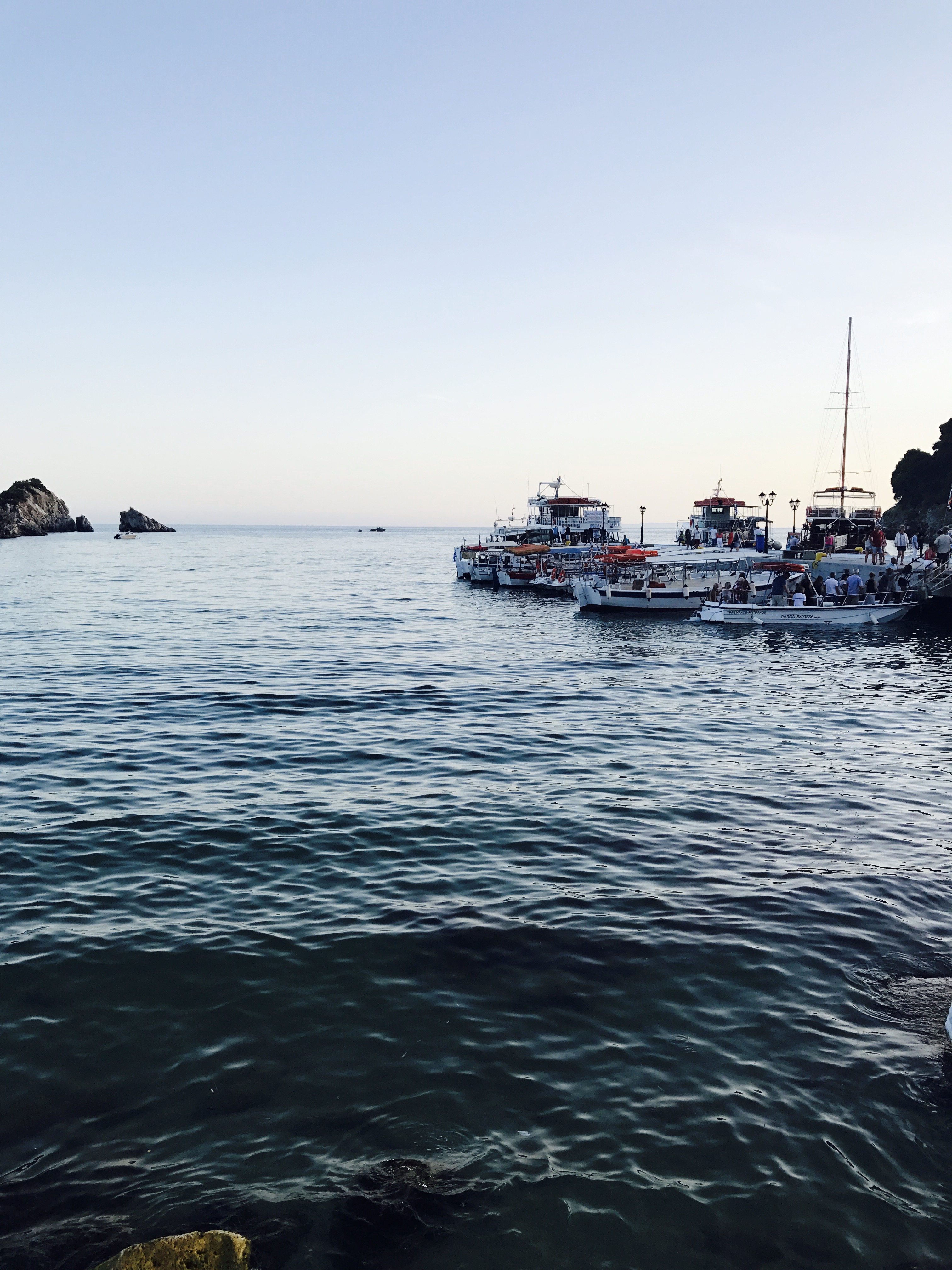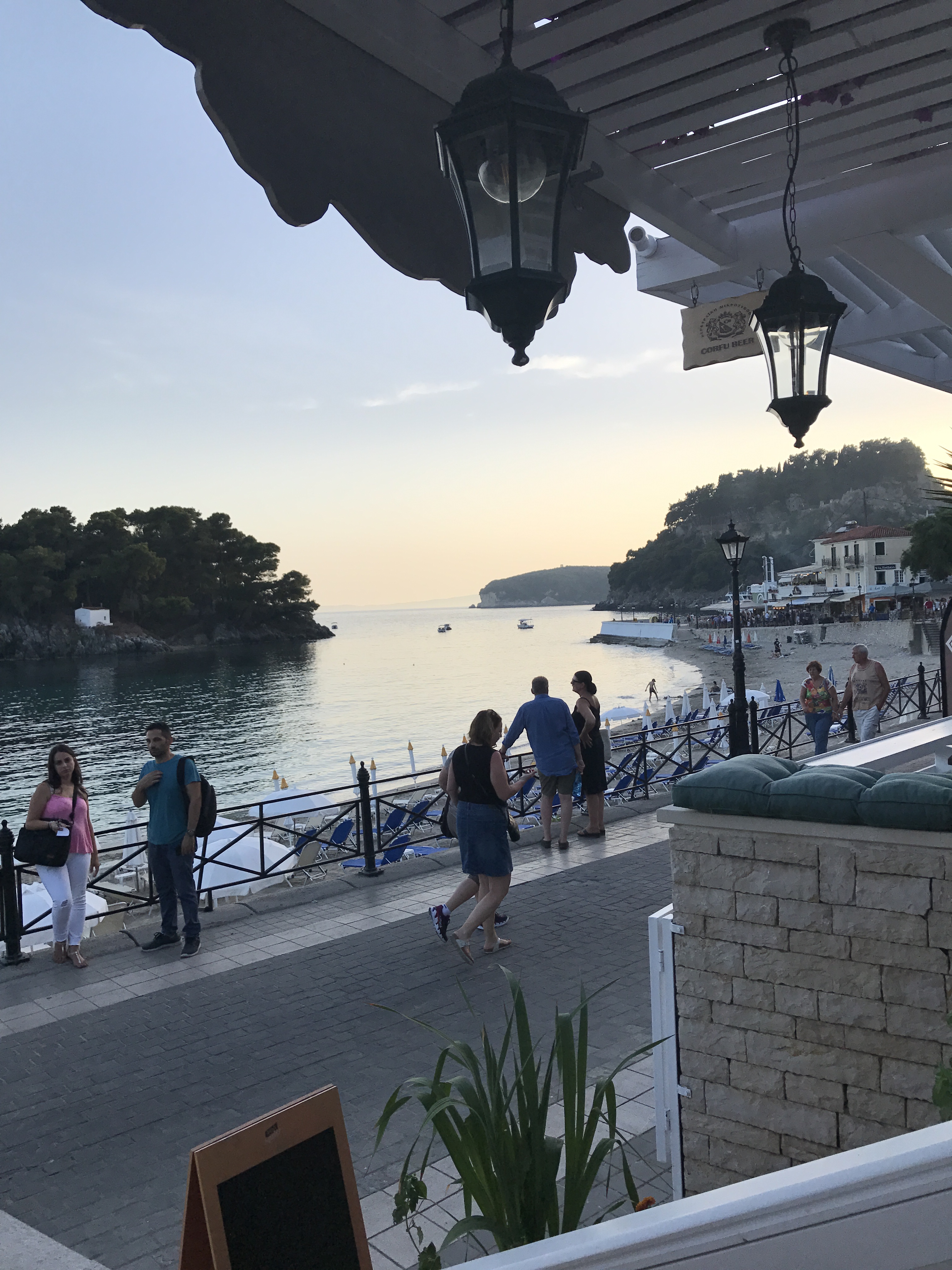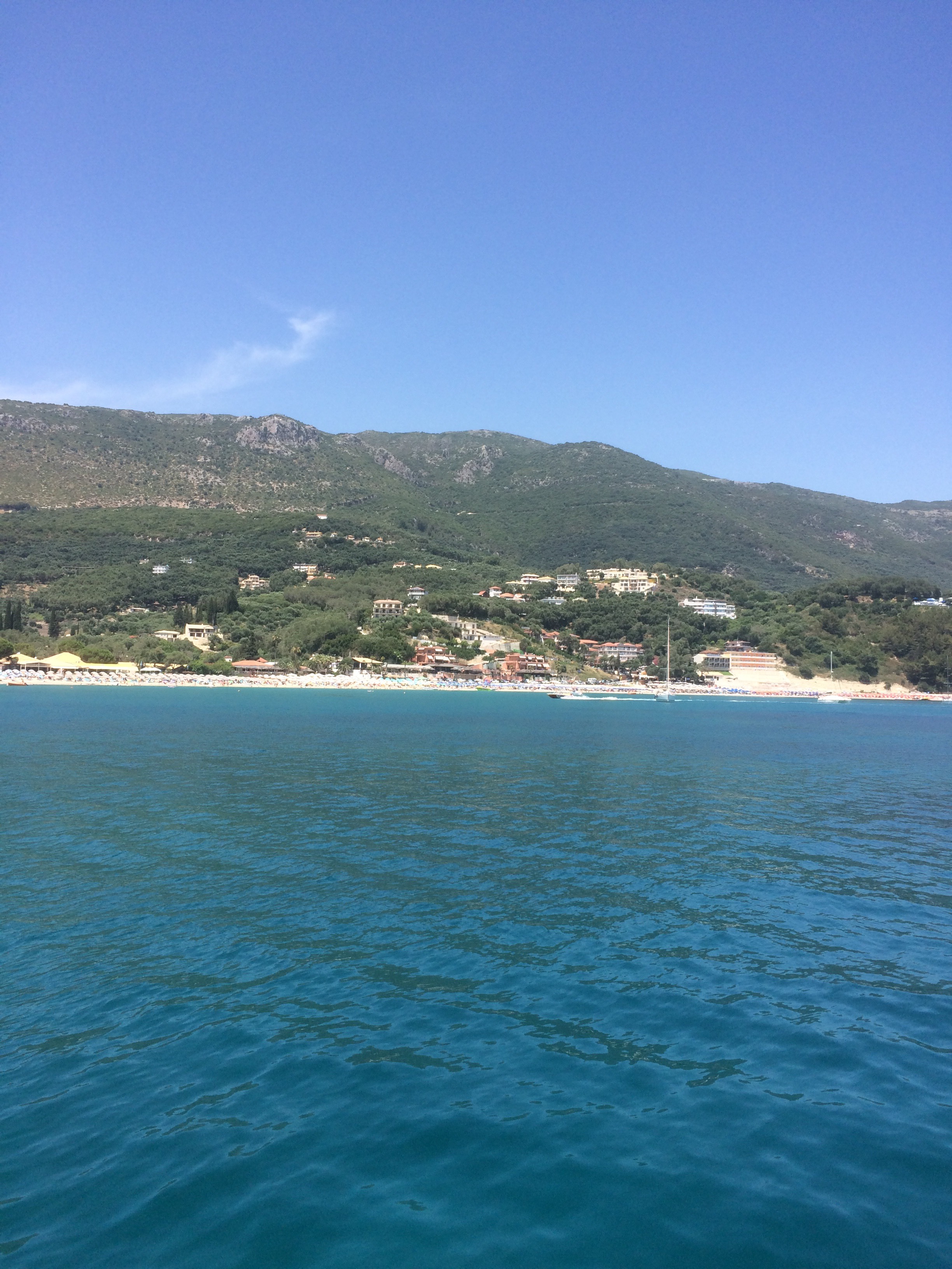 Vi packade ihop när vi vaknade, kokade kaffevatten och gav oss iväg tillbaka mot Paxos. Ingen vind idag heller, utan motorgång hela vägen tillbaka. Vi har fått för vana att dricka kaffe och äta en macka eller tallrik yoghurt när vi ger oss iväg, förutsatt att vädret gör det möjligt förstås. Så småningom kom vi fram till norra änden av Paxos igen. Vi har hört att utsidan av Paxos är spektakulärt och häftigt att se så vi bestämde oss för att gå runt hela ön för att så småningom lägga till i en liten vik på södra Paxos. Enligt Rod Heikell så har har det tidigare bott en koloni av munksälar här, men allt eftersom båtturister expanderat har dessa skygga djur försvunnit från öarna. Utsidan av Paxos var fantastisk. Höga klippor som reste sig ur havet och med stora grottor nere vid vattenytan. Turbåtarna var många och flera av dem åkte in och nästan försvann i de största grottorna. Otroligt häftigt och vid tillfälle hoppas vi kunna komma närmare och inspektera någon av grottorna. Vi rundade södra udden och gick in mot Mongonissi, en liten hamn på södra Paxos, där man är väl skyddad i alla väderstreck. Det var lugnt i viken och vi lade oss på svaj ganska långt in. Det blev lunch som för ovanlighetens skull tillagades av Katarina, bestående av grekisk sallad, bröd och tatziki som sköljdes ner med lite vin. Så småningom kom allt fler båtar och det blev allt trängre vid den lilla kajen och även ute i viken. Dagen övergick sakta mot kväll och när skymningen kom lagade Göran en god middag i båten. Efter maten tog vi gummibåten i land och avslutade med en kvällsdrink på en liten trevlig och väldigt grekisk bar i land. Kvällen var fantastisk och Mongonissi visade sig från sin allra bästa sida. Väl tillbaka i båten var det dags för den wibergska quizkampen och i dagsläget står det 2-0 till kapten Wiberg.