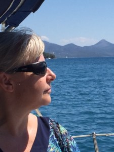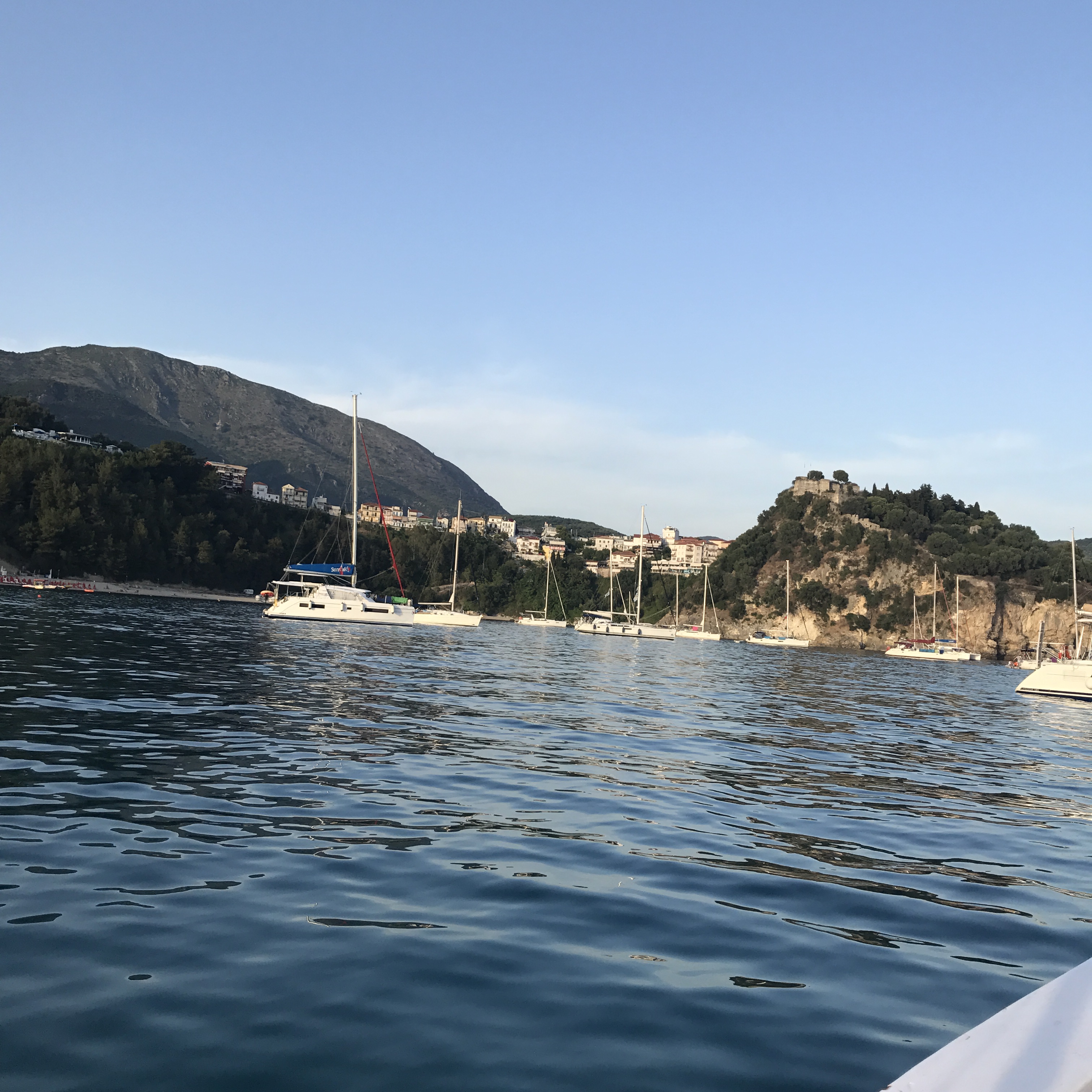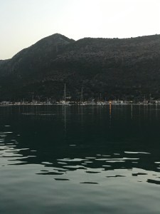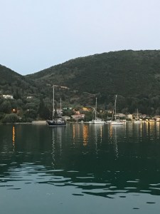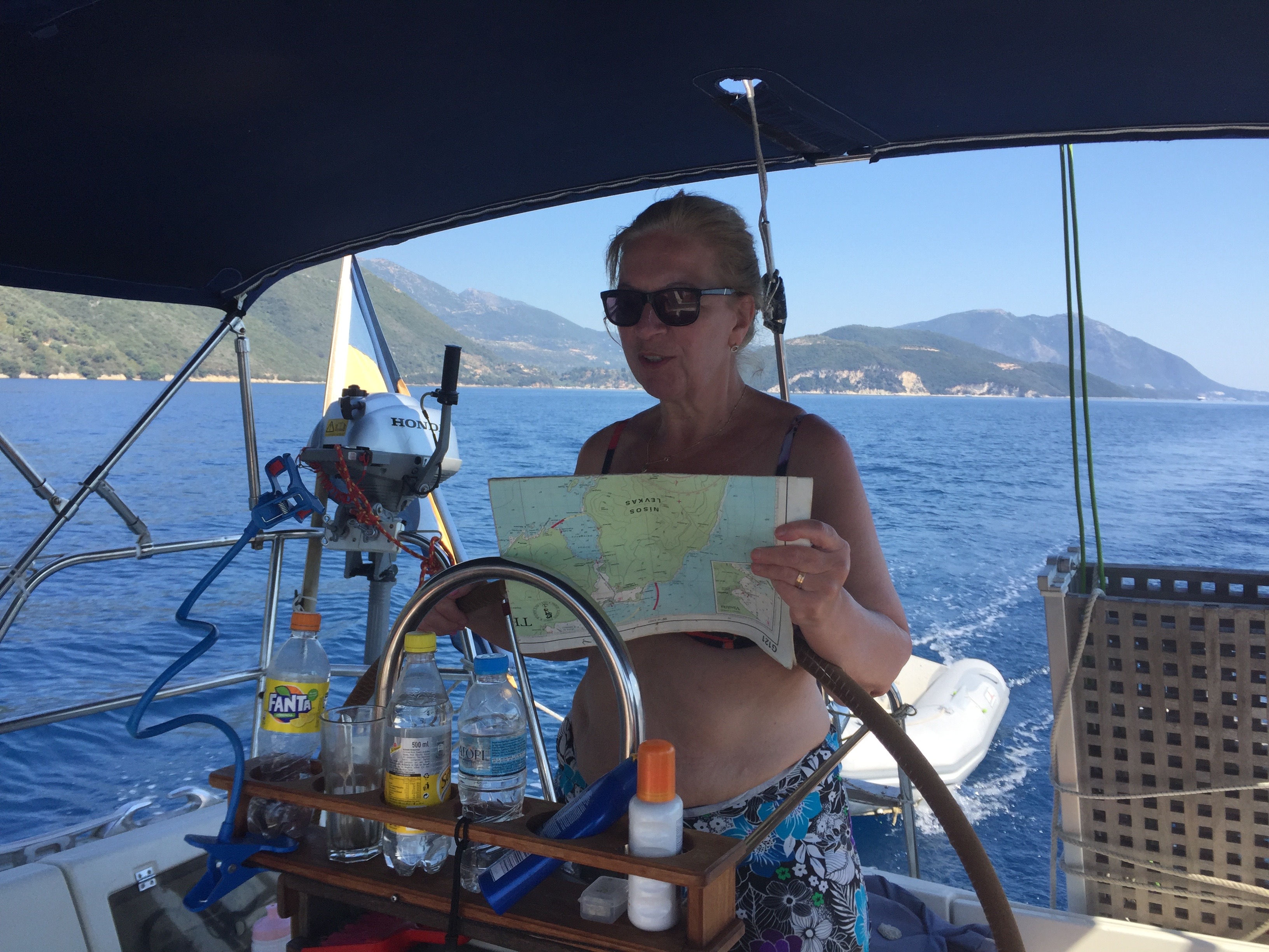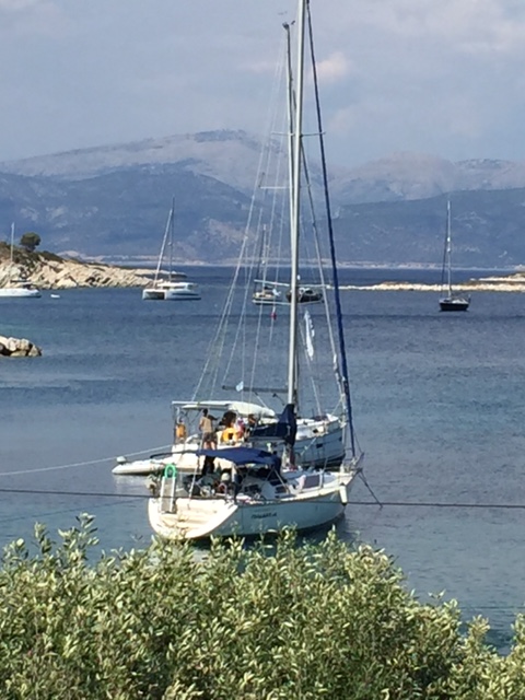 Som vanligt sov vi länge och åt en sen frukost i sittbrunn. Sedan såg vi att det började glesa ut i viken så vi bestämde oss för att flytta oss lite, men stanna kvar i Vlikho. Sagt och gjort. Vi drog upp ankaret och puttrade lite längre in i viken. Lite dividerande fram och tillbaka innan vi till slut släppte ankaret. Vi ägnade ytterligare lite tid åt gummibåten. Vi är ganska säkra på att det är i den gamla lagningen som den släpper luft, men det är så lite som pyser ut så det går inte att hitta med såpavatten. Däremot har vi noterat att det alltid är på den sidan som det blir lite mjukare. Vi misstänker att vi skulle behöva göra om hela proceduren med att dra upp gummibåten på däck, släppa ur luften och ta ur golvet. För att därefter ta bort alla gamla lagningar och börja om på nytt igen, förmodligen med resultatet att det håller ett tag och sedan börja läcka igen. Ny gummibåt kanske?? Det var bara att pumpa. Göran åkte iväg med sopor med Katarina diskade och låg och läste en stund. Vi åt en väldigt sen, men god lunch bestående av de rester vi har kvar i båten. Göran är en fena på att hitta på saker med det vi har. Han har numera introducerat en jonisk tradarmacka med wibergsk touch. Väldigt smaskigt. Efter lunch var det dags att diska igen och Katarina ägnade tid åt att åka runt med gummibåten och putsa fläckar på skrovet. Nu är Fragancia riktigt ren och fin. När kvällen kom så tog vi gummibåten in till land där tavernorna låg på rad. Vi hade hört talas om Elena och fick ett bra bord alldeles vid vattnet, där gummibåtarna låg på rad och guppade. Ett väldigt trevligt ställe med god service och väldigt god mat. Göran gick all in i havets läckerheter och beställde bläckfisk i vinäger till förrätt (som var mycket godare än det lät) och mixad seafood till varmrätt bestående av små stekta fiskar (MED ögon, Ingrid Magnusson), räkor m.m. Katarina höll sig mer traditionellt och på säker mark med skinka och melon till förrätt och grillad kyckling i gräddsås med bacon och sidfläsk till varmrätt. Allt sköljdes ner med en flaska vitt lefkadiskt vin som var riktigt gott och uppfriskande. Så småningom äntrade vi gummibåten välvilligt assisterade av personalen och tog oss tillbaka till Fragancia. Kvällen avslutades med quiz och det står numera 3-4 till Göran. Katarina knappar in.