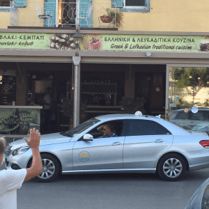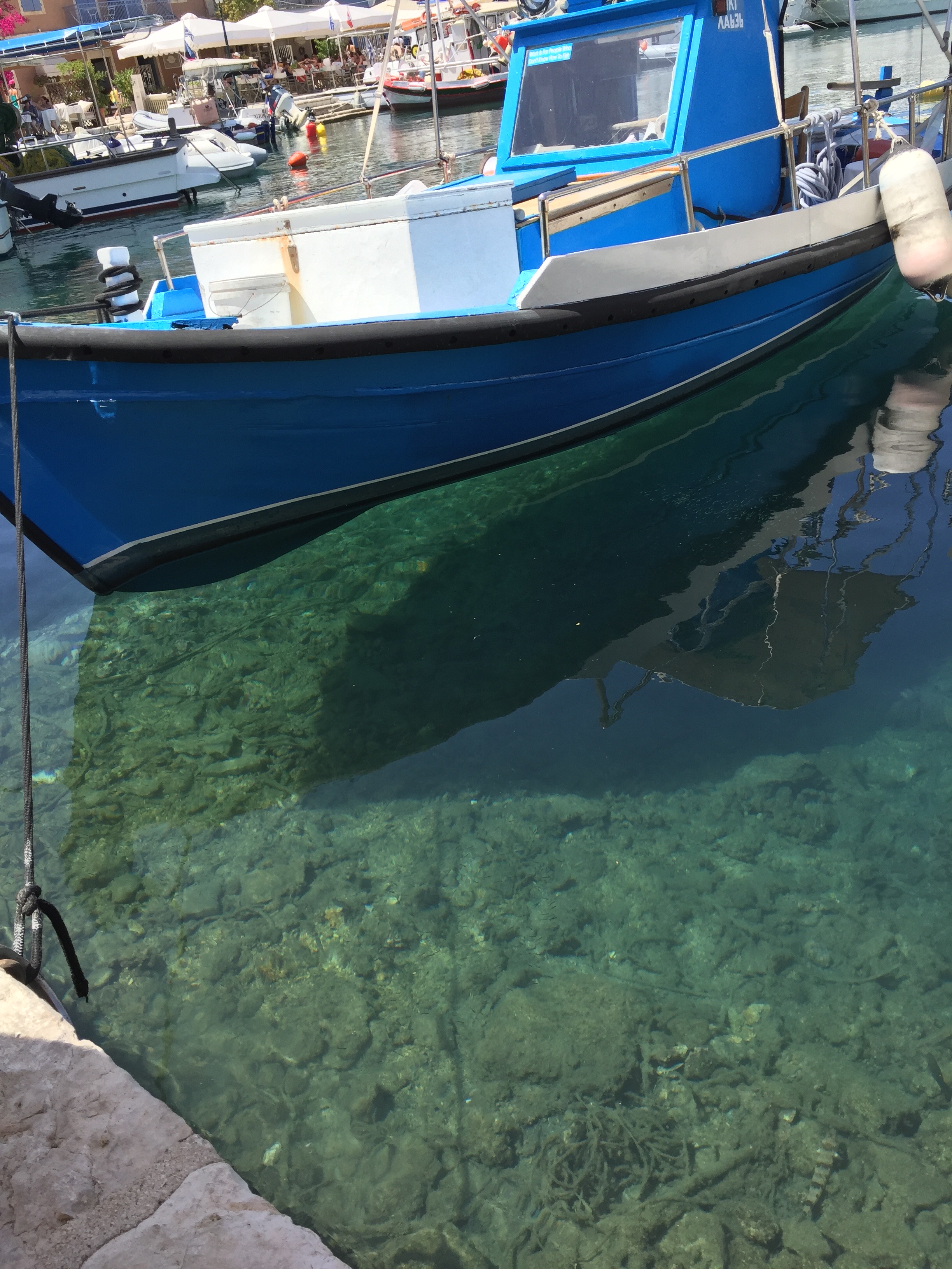 Vi ställde klockan och lämnade Abelike strax efter 08.00. Det var en vacker morgon, alldeles stilla och med ett lätt dis över vattnet. Det var bara vi och fiskegubbarna ute på havet när vi satte kurs mot Kastos. Ingen segling, utan motorgång hela vägen. Väl framme lade vi oss med linor in mot kajen. Det blev ett dopp i det klara vattnet och slappa i sittbrunn innan Göran gjorde omelett med sallad till lunch. Precis när vi skulle ta oss i land kom ett gäng engelsmän in i en hyrbåt och började med att slänga sitt ankare över kättingen tillhörande ett tysk båt och var nära att ramma Fragancia. Det var ett väldans liv och de körde fram och tillbaka i hög hastighet innan de slutligen fick upp sitt ankare och började om. En stackare simmade in till land, utan badskor och till slut fick de fast sin båt. Vi tog en promenad upp till Kvarnen för att beundra utsikten. Katarina och Carina tog en kall cappuccino medan Göran tog en märklig jordgubbsdrink innan vi gick tillbaka ner i byn och köpte på oss lite mer chips.