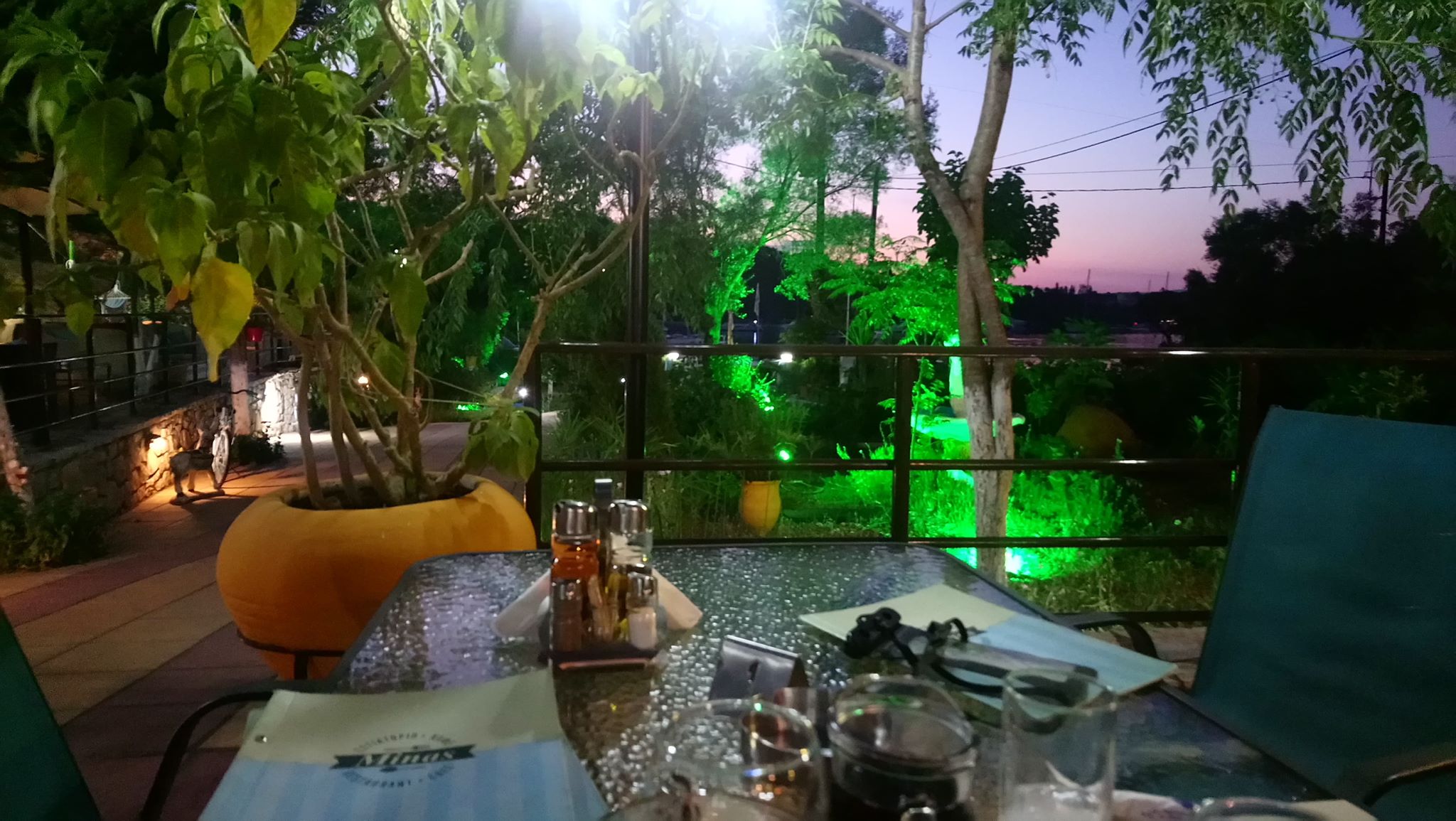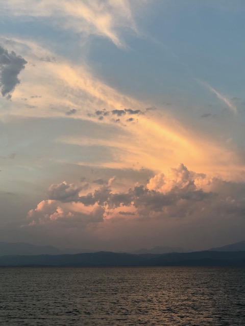 Vi steg upp tidigt och packade ihop. Kaffe i sittbrunn på väg upp mot Lefkas. Vi tänkte att vi skulle tanka utanför Nidri, men macken var stängd så vi fortsatte istället norrut. Strax innan kanalen konstaterade vi att vi skulle missa broöppningen kl. 9.00 så vi beslöt att släppa ankaret i viken för att äta lite frukost och bada en stund. Det blev en kortis, men ändå dröjde vi för länge så när vi väl kom upp till Lefkas så missade vi broöppningen kl. 10.00 med ungefär 5 minuter. Just idag beslöt sig uppenbarligen brovakterna för att öppna bron i tid, vilket vi aldrig varit med om tidigare. Nåväl vi tankade i Lefkas istället och fyllde på vatten i tankarna. Sedan var det bara att släppa ankaret en stund och vänta på broöppningen kl. 11.00. Väl ute på norra sidan av Lefkas var det vindstilla, ingen segling som vi hade hoppats. Vi gick för motor hela vägen upp till Preveza och ankrade i viken utanför Cleopatra Marina. Vi hade stämt träff med Jess och Andy igen för en lunch innan det var dags för de att bege sig till Korfu för två veckors semester innan de skulle återvända till Edinburgh igen. Det var trevligt att träffa dem och det blev ett par timmar på restaurangen med god mat igen och trevliga samtal. Väl tillbaka i Fragancia tog vi upp ankaret och åkte till ”Hospital bay”. Det ska bli dåligt väder igen så vi kröp så långt in i viken vi kunde och släppte ankaret. Flera har varnat för ytterligare åskväder som ska dra ner över landet så vi lade ut lite extra kätting också för säkerhets skull. Fram mot kvällen tog vi gummibåten in till land för lite middag. Det dåliga vädret skulle komma senare på natten, men vi kände ändå hur luften blev allt mer kvav och tung. Vi hann ändå med en enklare middag bestående av gyros och souvlaki på snabbmatsstället. Sedan tog vi en promenad i Preveza och gick in i en del affärer. Det var ett härligt folkmyller på lördagskvällen och vi tog oss upp i gränderna och hamnade på samma mysiga bar som vi besökte förra året med Jess, Marina, Roger, Lisbeth och Tommy. Vi tog en kvällsdrink innan vi drog oss ner till hamnen igen och åkte tillbaka ut till Fragancia. Väl i båten så började åskan rulla in över viken och blixtarna kom allt tätare. Sedan öppnade sig himlen och det ösregnade samtidigt som blixtarna avlöste varandra. Vi var tacksamma för att vi hann ut till båten innan det brakade loss och när vi väl satt och kurade i sittbrunn med alla luckor stängda, ankaret väl nergrävt i botten och bra lä från alla håll så kändes det rätt okey i alla fall. Så småningom rullade åskvädret vidare, men regnet höll i sig när vi gick till sängs och vi somnade till trummandet av regnet mot rufftaket.