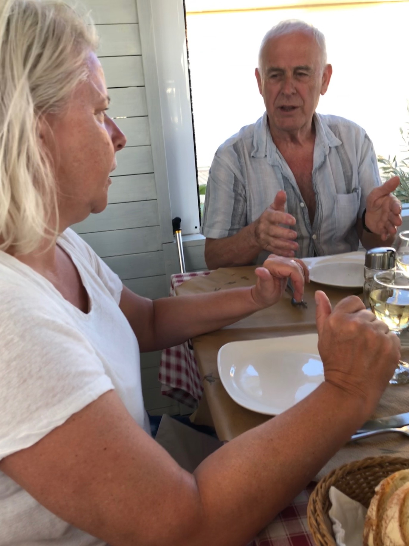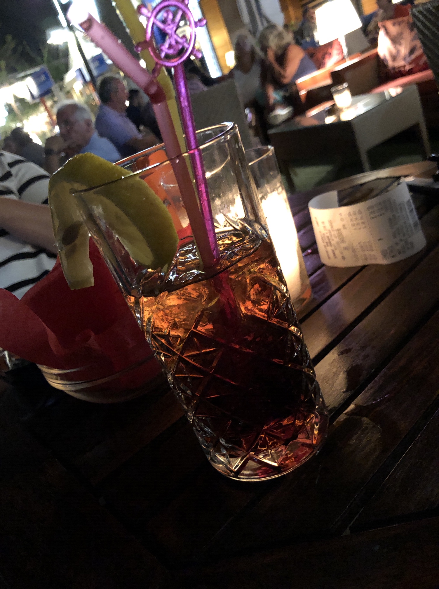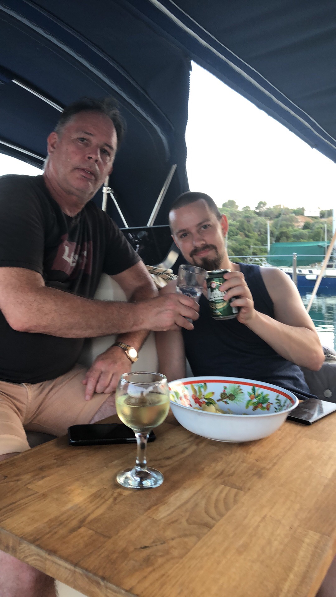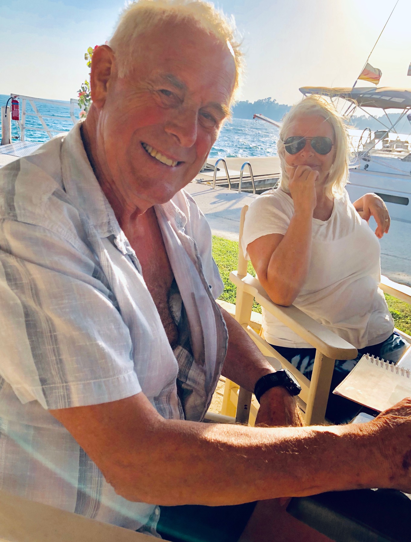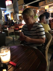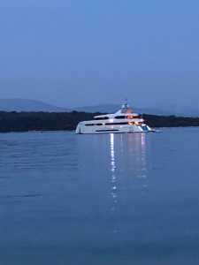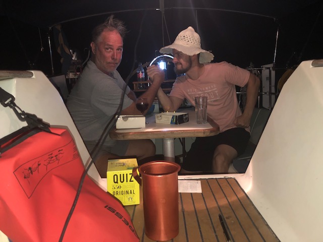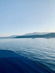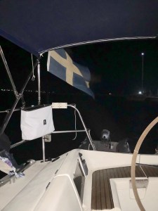 Så var vi tillbaka igen i Fragancias sittbrunn denna heta sommarnatt. Faktum är att detta blir vår sista resa. Vår andel är såld och från 1 september är det nya ägare som tar över. Det är med blandade känslor som vi packar upp och bäddar i ordning våra kojer. Med på resan är Daniel, Katarinas yngste son. Vi ser fram mot att få visa alla våra smultronställen och börjar därför med att gå upp till torget och restaurang Nautilus där vi träffade vår favoritservitris. Lite god mat på kvällskvisten och glada skratt med söta Ella. Efter en promenad genom stan var vi tillbaka på båten, satt en stund i sittbrunn innan det var dags att krypa till kojs.