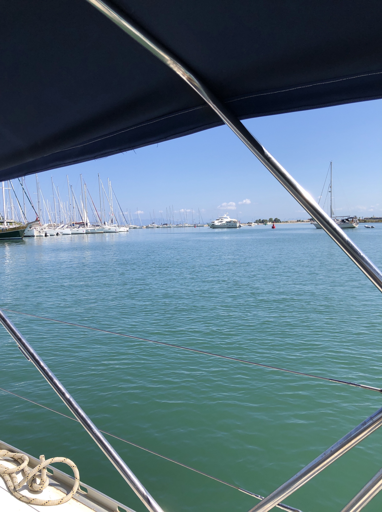 Åter igen en tidig morgon. Vi började plocka ihop våra saker. Sedan tog vi gummibåten in till stan, åt frukost på Posto café och hämtade tvätten hos Sofia. När vi var tillbaka på Fragancia igen plockade vi av motorn på gummibåten och lade upp den på däck. Sedan drog vi upp ankaret och gav oss av söderut mot Lefkas. Eftersom vädret kommer vara dåligt ett par dagar till har vi bestämt oss för att lämna båten idag. En avlastare har dessutom gått sönder (en mojäng som håller linor på plats i sittbrunn) och behöver bytas. Vi har bokat en hyrbil och tänker oss en liten miniroadtripp på Peloponnesos. Strax efter 12.00 var vi framme i Lefkas. Göran gjorde varsin rejäl omelett till lunch och sedan var det dags att städa och packa. Klockan 16.00 kom Nichos och hämtade oss och vi lämnade Fragancia för allra sista gången. Vi har haft sju fantastiska somrar på Fragancia. Vi har lärt oss massor om segling och upptäckt fantastiska platser. För att inte tala om att underbara människor vi mött genom åren. Vi har förälskat oss i Grekland och människorna här och vet att vi alltid kommer att återkomma, men aldrig mer med Fragancia. Det känns lite vemodigt, men samtidigt helt rätt. Härmed avslutar vi kaptens logg och tackar alla som varit med oss. Nu väntar nya äventyr.
