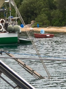 Vi vaknade vid 5 på morgonen av åskan igen. Det mullrade rejält och åter igen öppnade himlen sig och regnet vräkte ner i viken. Det var bara att kura ihop sig i kojen och somna om. När vi vaknade några timmar senare var himlen klarblå igen och solen sken. Vi åt frukost i sittbrunn, men har bestämt oss för att stanna kvar i viken eftersom det ska blåsa upp ganska rejält. Annars var den ursprungliga planen att vi skulle bege oss in i bukten till den mysiga viken vi var med Daniel och sedan försöka se lite delfiner på vägen hem, men vädret styr man inte över och planerna fick som sagt ändras. Vi åkte in till Preveza vid lunchtid och lämnade tvätt, sedan blev det varma mackor till lunch i båten. Resten av dagen ägnades åt att sola, läsa och sova en stund. Vinden kom och ryckte rejält i båten, men vi hade en utmärkt plats långt in i ”Sjukhusviken” väl skyddade. Vinden kom från NV, d.v.s. från land vilket gjorde att det inte hann bli så mycket vågor i viken. Fram mot kvällen mojnade vinden något och vi fick kaptens berömda Carbonara i sittbrunn. Kvällen ägnades åt kortspel, plump igen. Denna gång avgick Katarina med vinsten. Så småningom kröp vi till kojs och somnade snabbt.