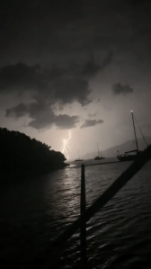 I eftermiddag ska det blåsa upp och vädret kommer bli sämre så vi beslöt oss för att gå till Abelike, vår favoritplats och ett bra ställe att vara om det blir dåligt väder. Vi gav oss av från Kastos direkt efter att vi vaknat. Ingen vind så det blev motorgång hela vägen. Efter ett par timmar var vi framme och efter att avvaktat en katamaran som skulle ge sig iväg inom någon halvtimme, kunde vi släppa ankaret ganska långt in i viken och dra linor till land. Vi fick bra fäste och kände oss trygga där vi låg. Vi gjorde lunch, grekisk sallad och fetaostomelett. Sedan blev det ett par timmar med bad och sol i en tryckande hetta. Sent på eftermiddagen/kvällen så kom ett brittiskt par och lade sin båt utanför oss. Bra tänkte vi, någon som skyddar om det börjar blåsa upp från havet. De gjorde om två gånger och drog sedan linor till land, men efter någon timme satte de igång motorn igen och började greja med ankaret. Plötsligt släppte de linorna i vattnet, drog upp ankaret och gav sig av ut i viken. De lade sig längre ut och släppte ner ankaret igen. Efter ett par försök så var de nöjda och låg på svaj. Mannen kom så småningom i gummibåten och hämtade sina linor. Det visade sig att deras ankare inte var så bra och de har börjat dragga. Vi sände en tacksam tanke till de tidigare ägare som köpte ett så bra och stabilt ankare som vi har. Så småningom började molnen torna upp sig och lagom till kvällsdrinken mullrade åskan. Den ursprungliga planen var att gå till Vahti och äta middag, men den planen ändrades snabbt och det fick bli middag i båten. Mullrandet tilltog och när mörkret föll så bröt ett åskväder ut som var fantastiskt och skrämmande på samma gång. Flera åskväder på olika ställen, men tack och lov inget som gick över viken. Ett intensivt skådespel som varade någon timme med helt makalösa blixtar som avlöste varandra och lyste upp himlen så det kändes som dagsljus. Sedan kom ett ösregn som bara varade någon halvtimme och sedan drog allt bort och vi kunde krypa till kojs.